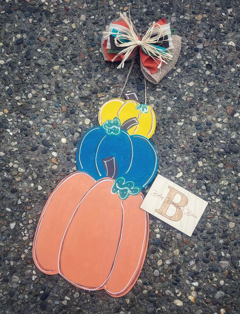 21" x 11.5" NEW Pumpkin Stack Door Hanger Wood Cutout