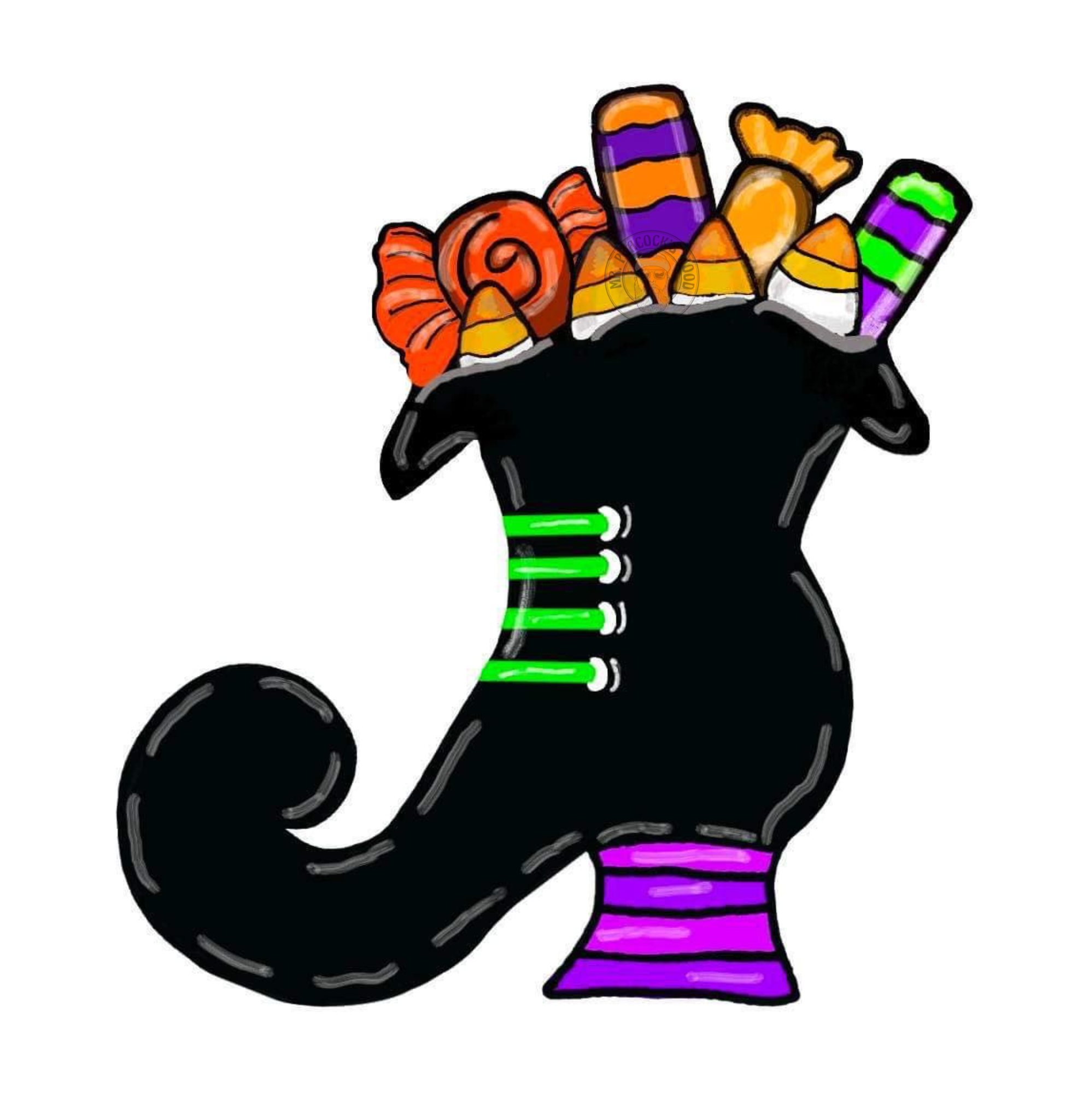 22" x 19" Witches Candy Boot Door Hanger Wood Cutouts