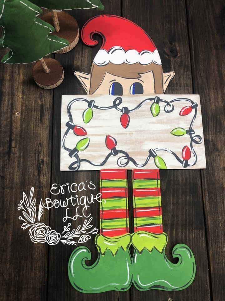 21” Elf Holding Plaque Door Hanger Wood Cutout