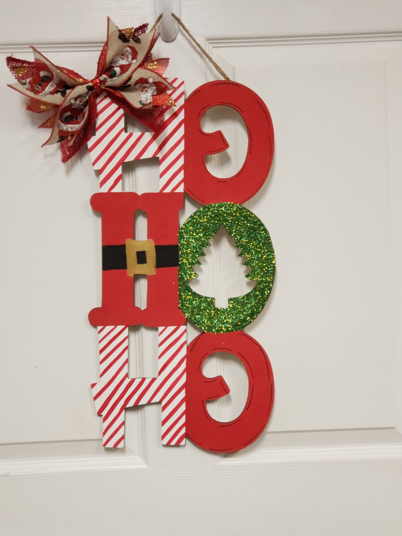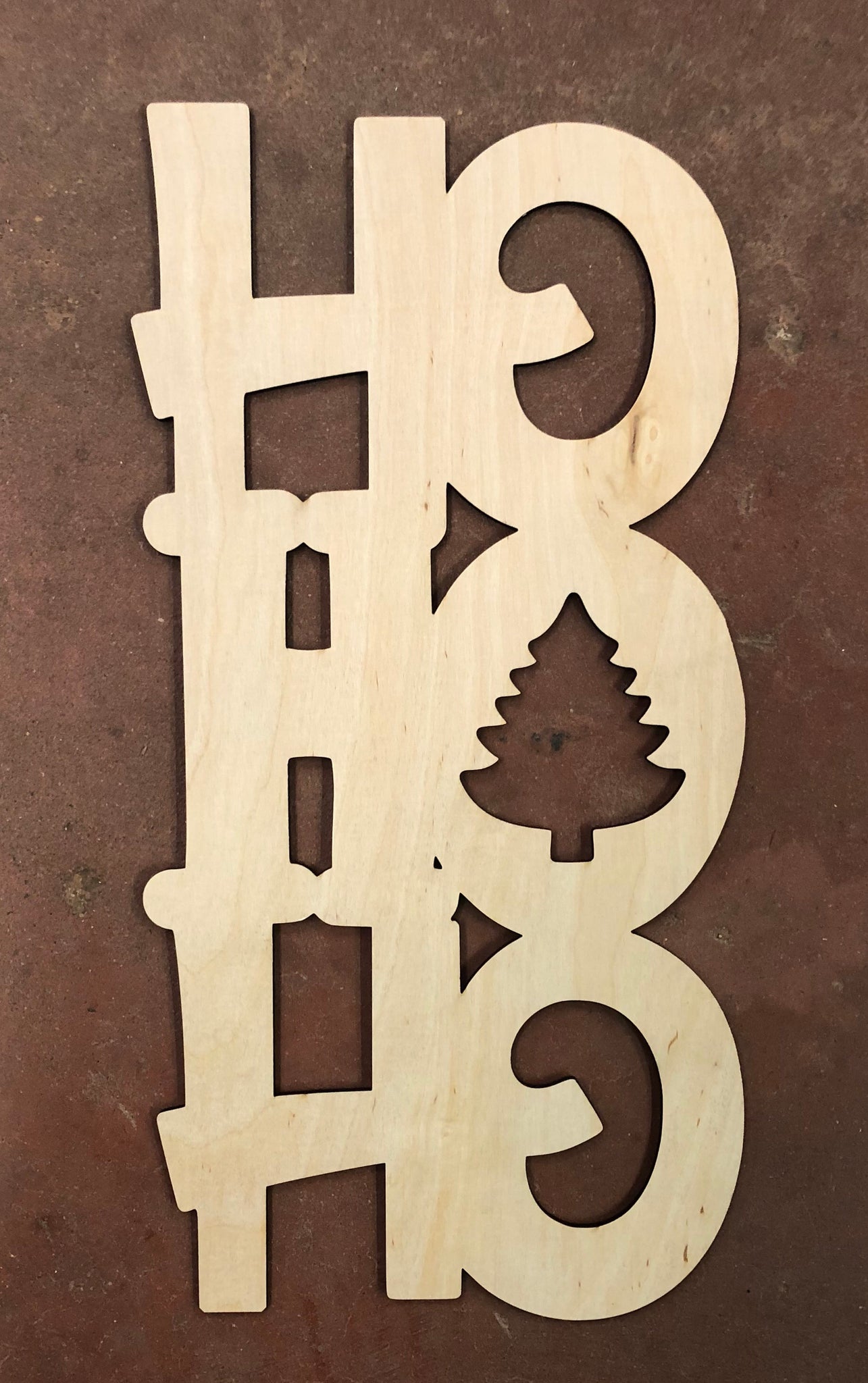 21" Hohoho with Tree Center Christmas Door Hanger Wood Cutout