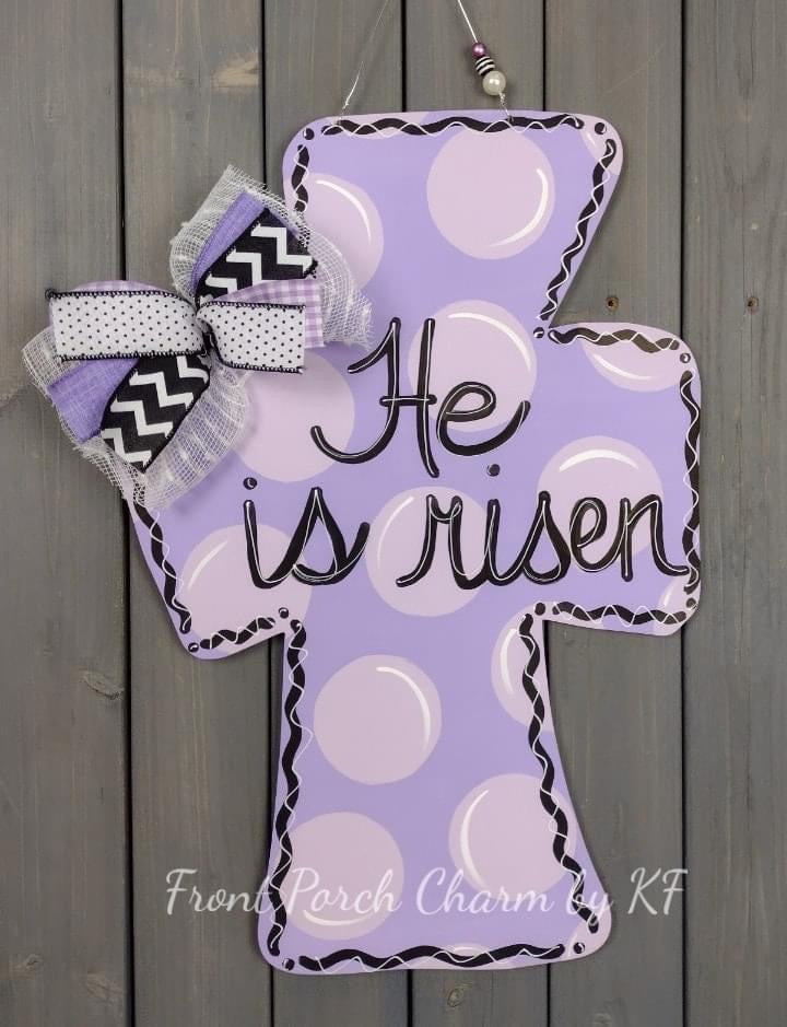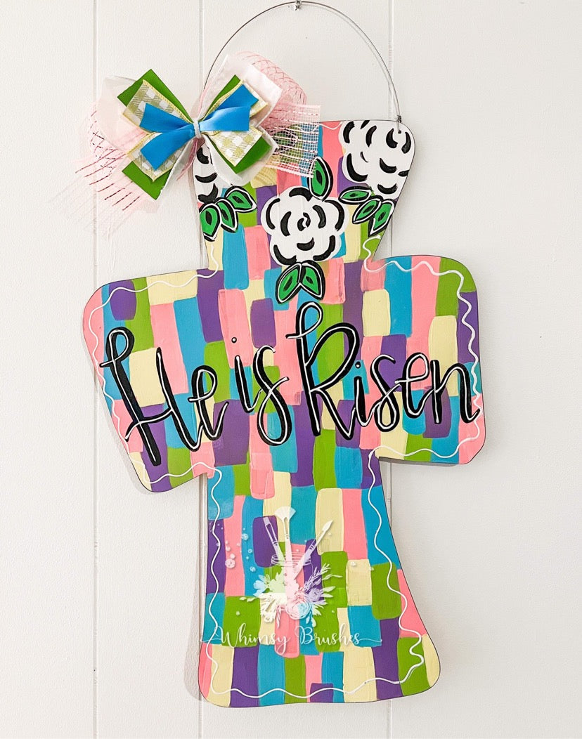 This whimsical cross features gentle curves and playful lines that give it a softer, more decorative feel than traditional cross designs. It’s well-suited for Easter décor while still working beautifully as a year-round faith-based piece.