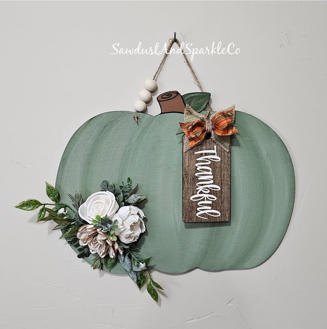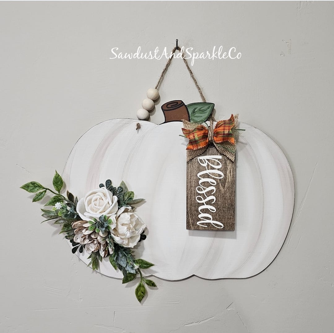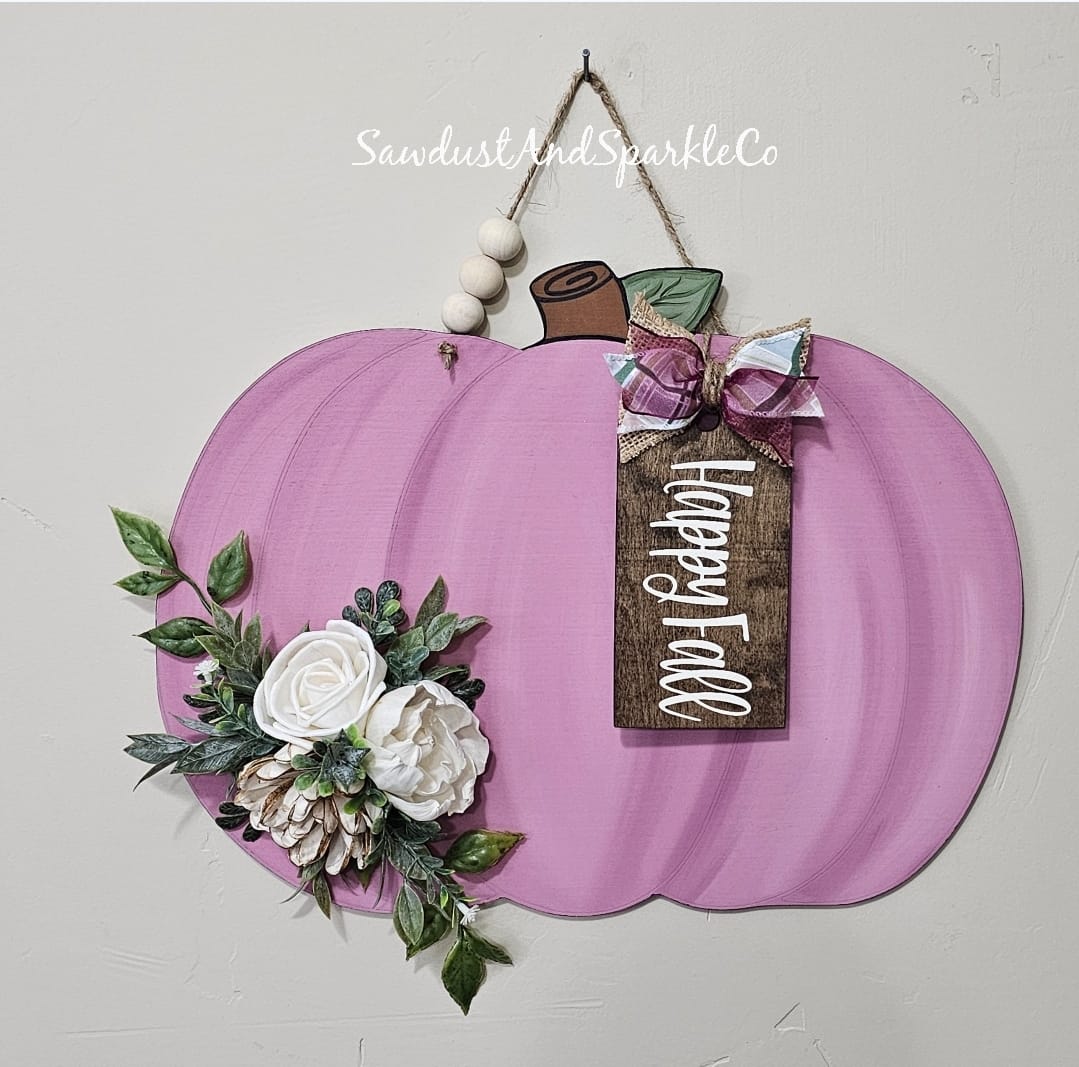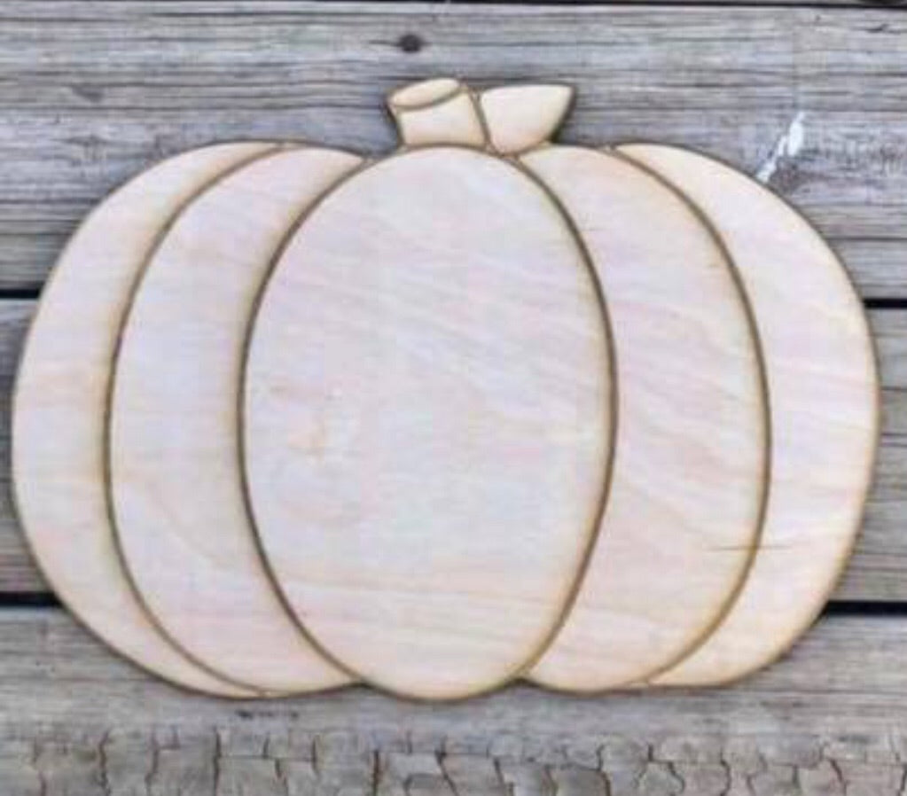 15” Single Pumpkin With Lines Door Hanger Wood Cutout