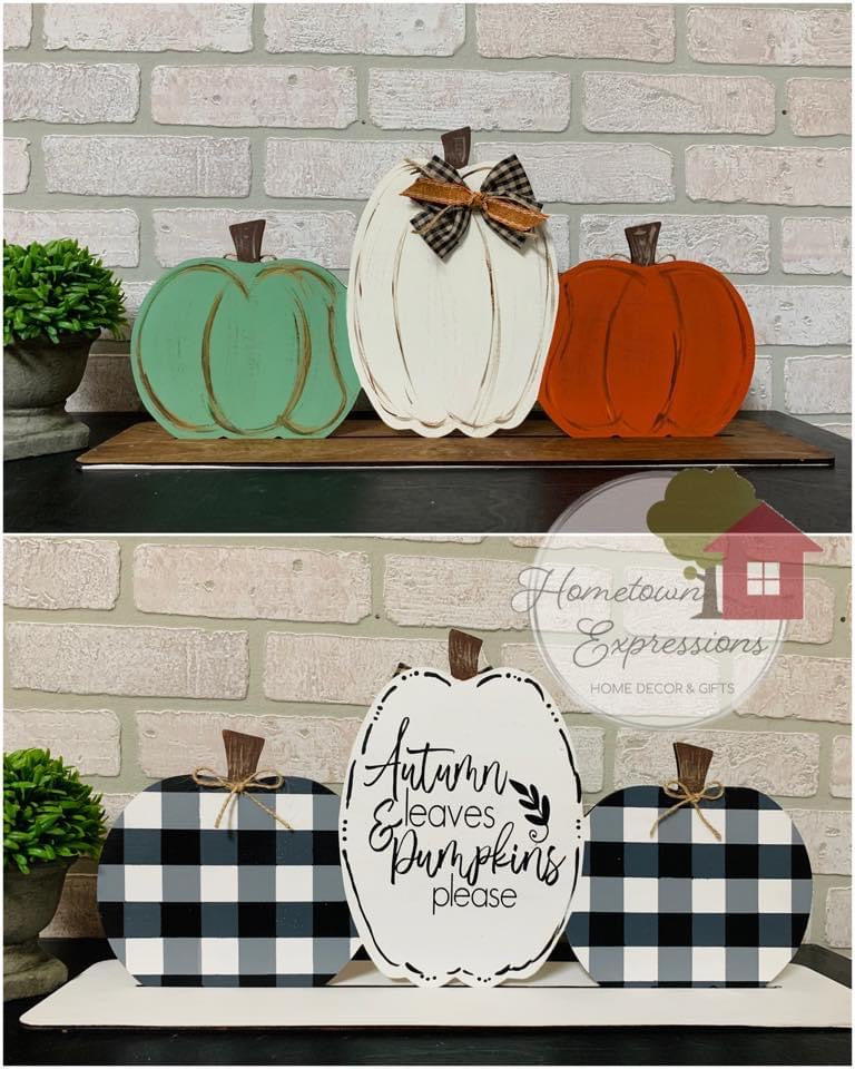 19” x 9.5" Triple Pumpkins With Stand Wood Cutout