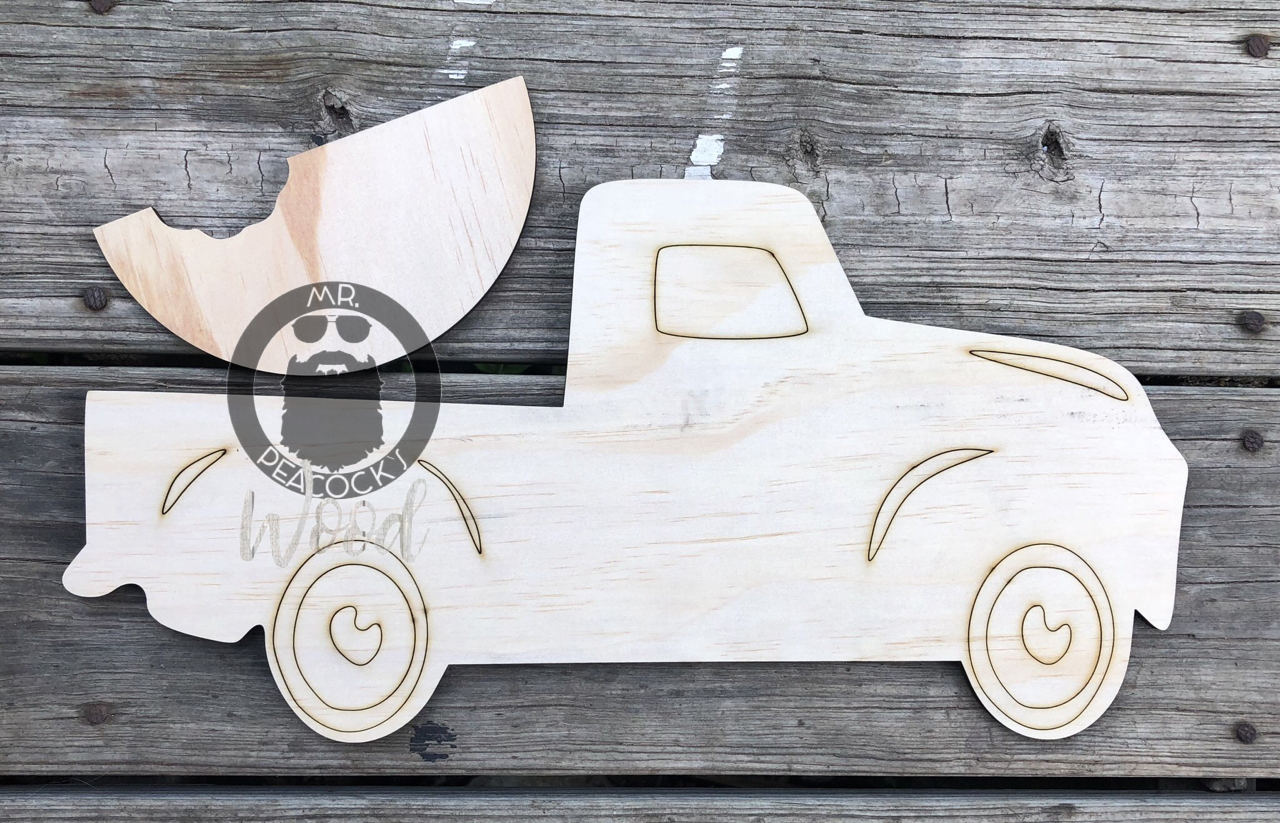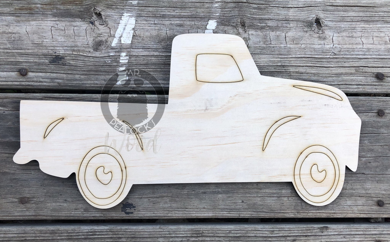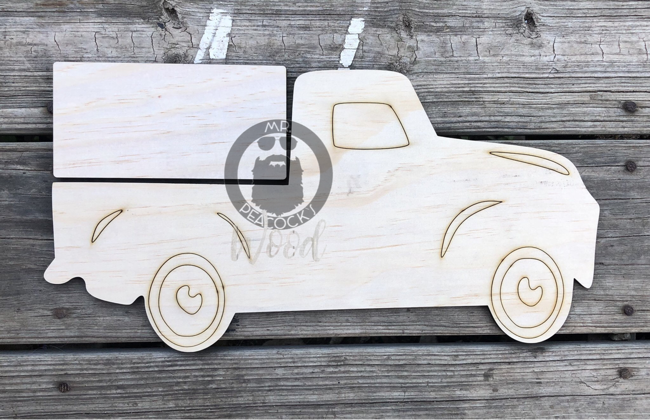This farmhouse truck craft blank is designed to coordinate with 6-inch seasonal shapes or plaques, making it a versatile base for interchangeable décor. The classic truck silhouette provides a clean foundation that works well for year-round themes and seasonal updates.
