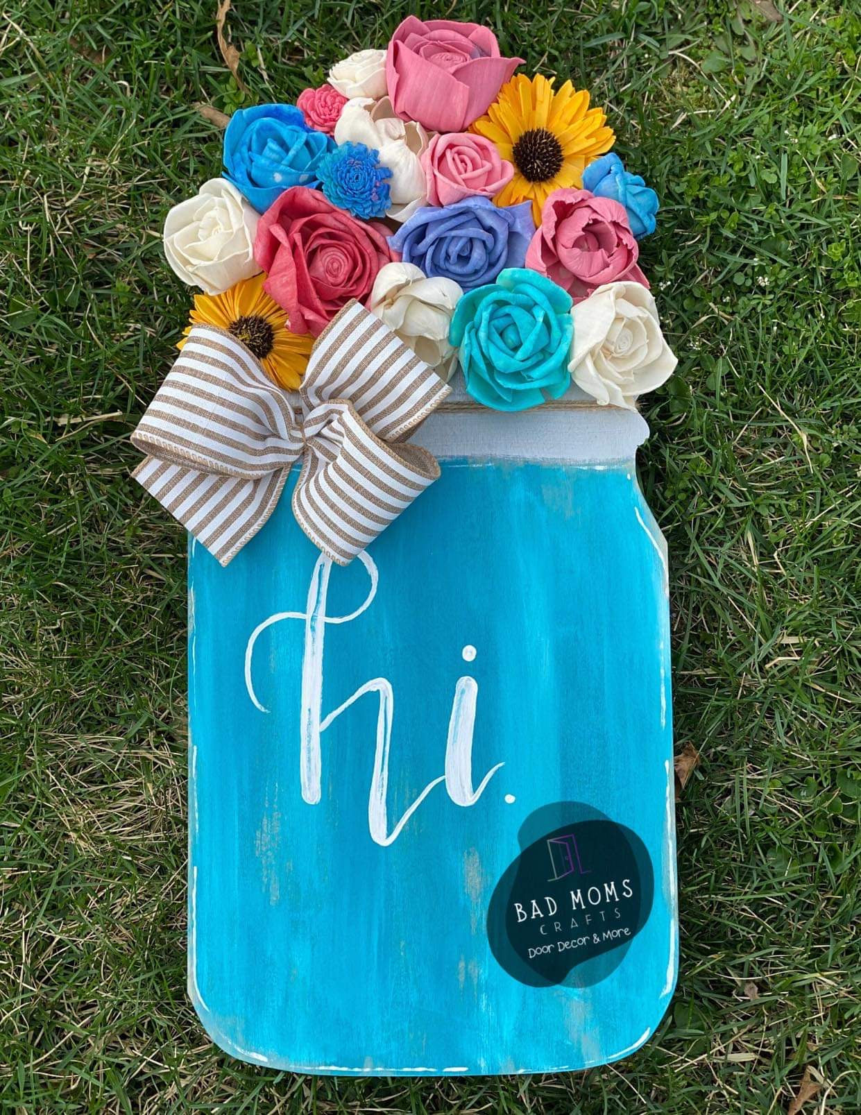 This 19" Mason Jar With Circle for Flowers Door Hanger Wood Craft Blank features a timeless mason jar design with a circular opening detail that’s perfect for adding painted florals, faux flowers, or layered accents.
