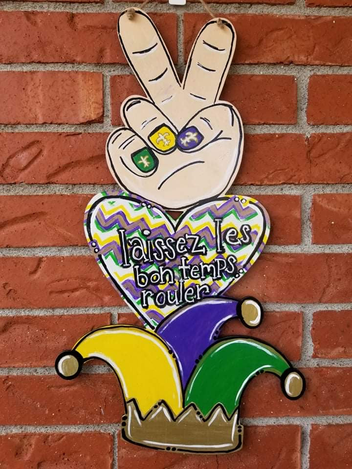 This unfinished wood blank features the iconic peace sign, heart, and fleur-de-lis combo, giving you plenty of space to layer on Mardi Gras colors, patterns, and personality. Whether you’re painting for yourself, hosting a paint party, or creating inventory to sell, this piece is a guaranteed crowd-pleaser.