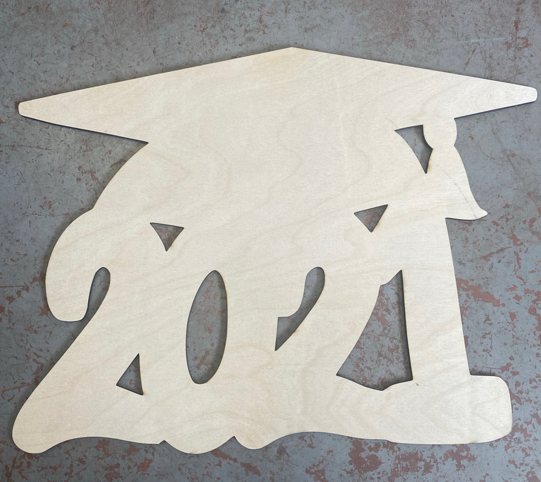 19" x 14.5" 2021 Grad Cap Door Hanger Wood Cutouts