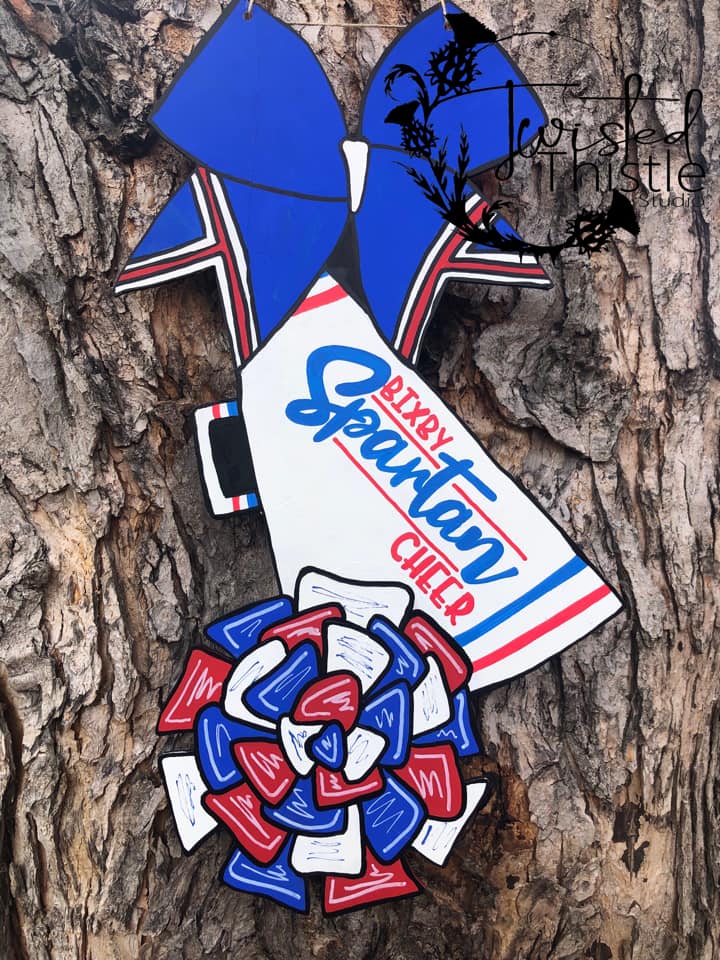 22" Cheer Bow Megaphone Pom Pom Tri Piece Door Hanger Wood Cutout