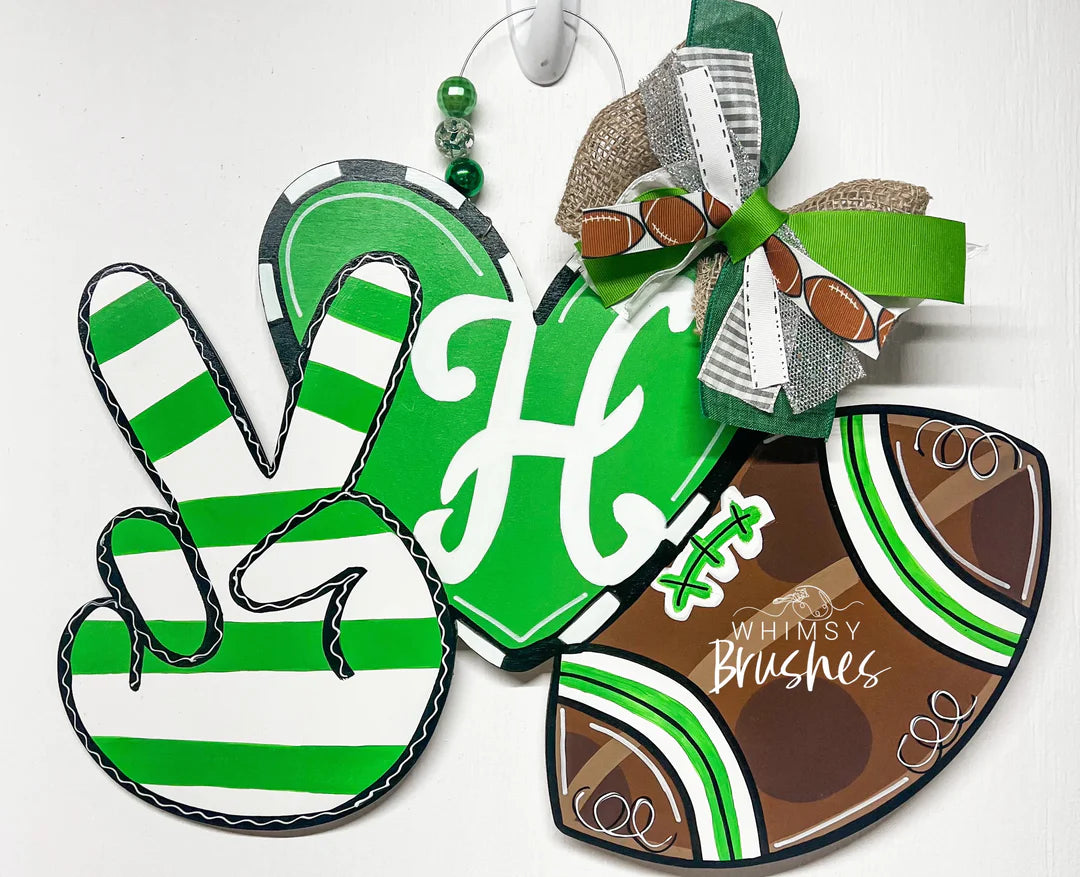 19" x 13" NEW Peace Love Football Door Hanger Wood Cutout
