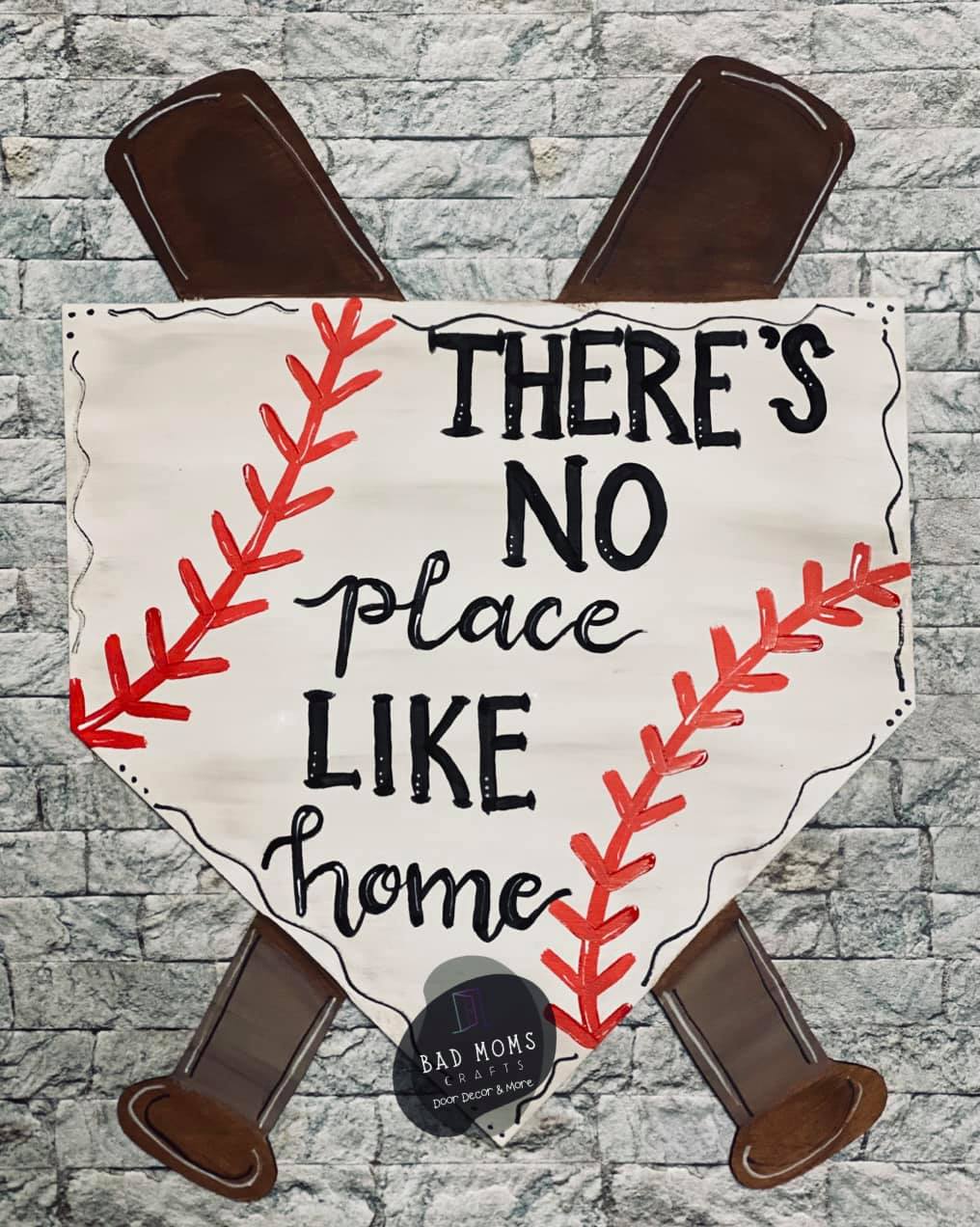 22” x 16.5” Home Base With Bats Door Hanger Wood Cutout