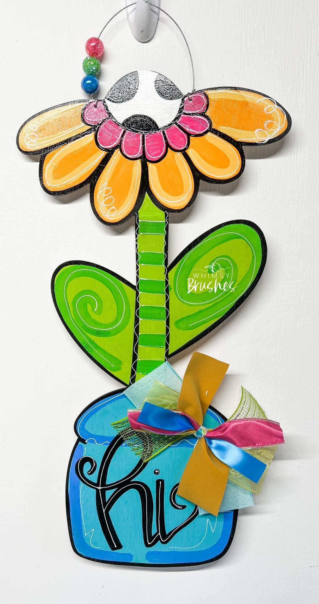 Add instant charm and feel-good spring vibes with this 22" x 11.5" Whimsical Flower In Jar Door Hanger Wood Craft Blank 🌼