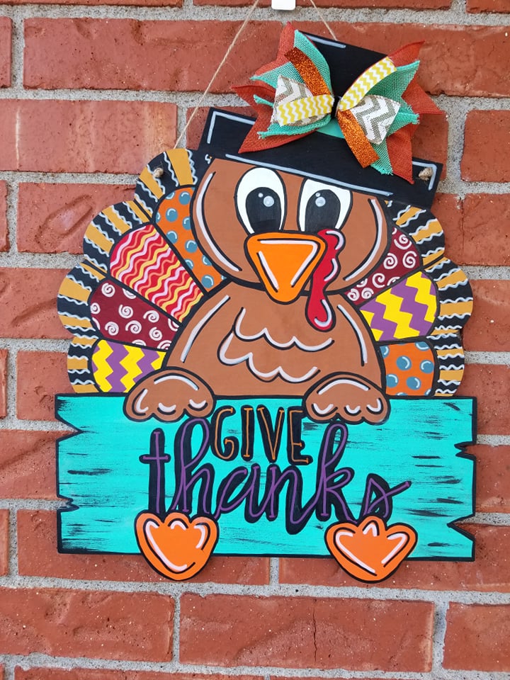 20" x 15" Pilgrim Turkey With Wood Plank Door Hanger Wood Cutout