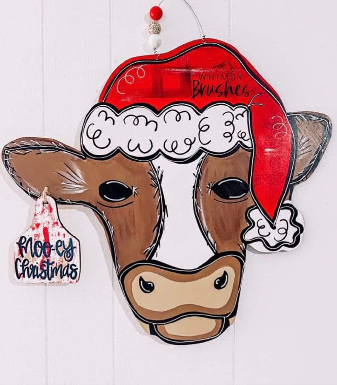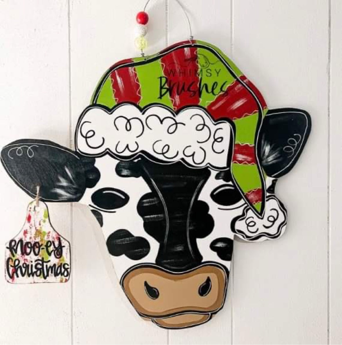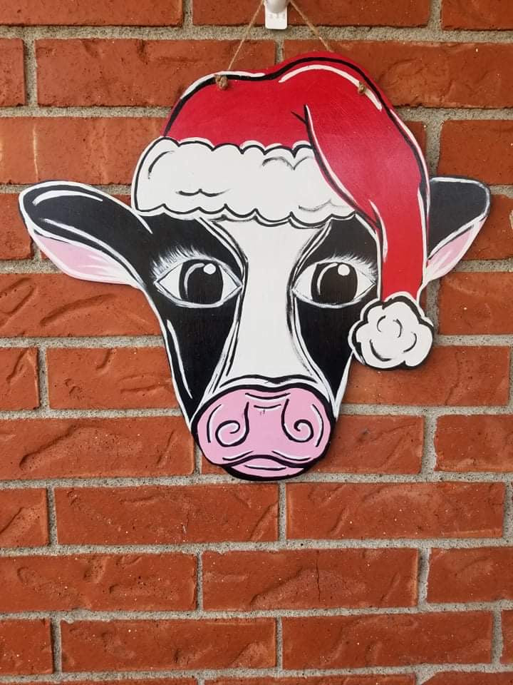 19" x 17" Cow Head With Santa Hat Door Hanger Wood Cutouts