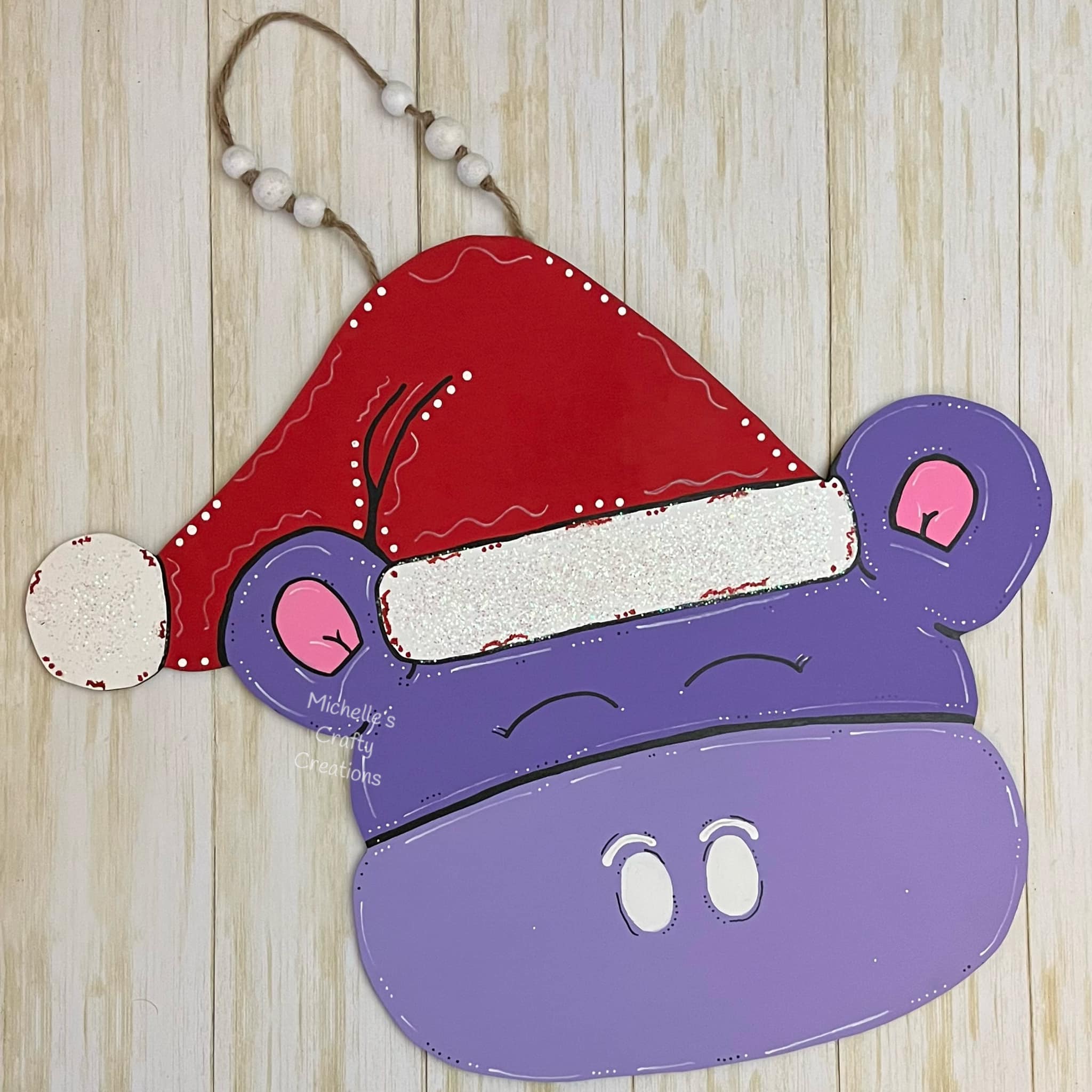 20" x 16" Christmas Hippo Door Hanger Wood Cutouts